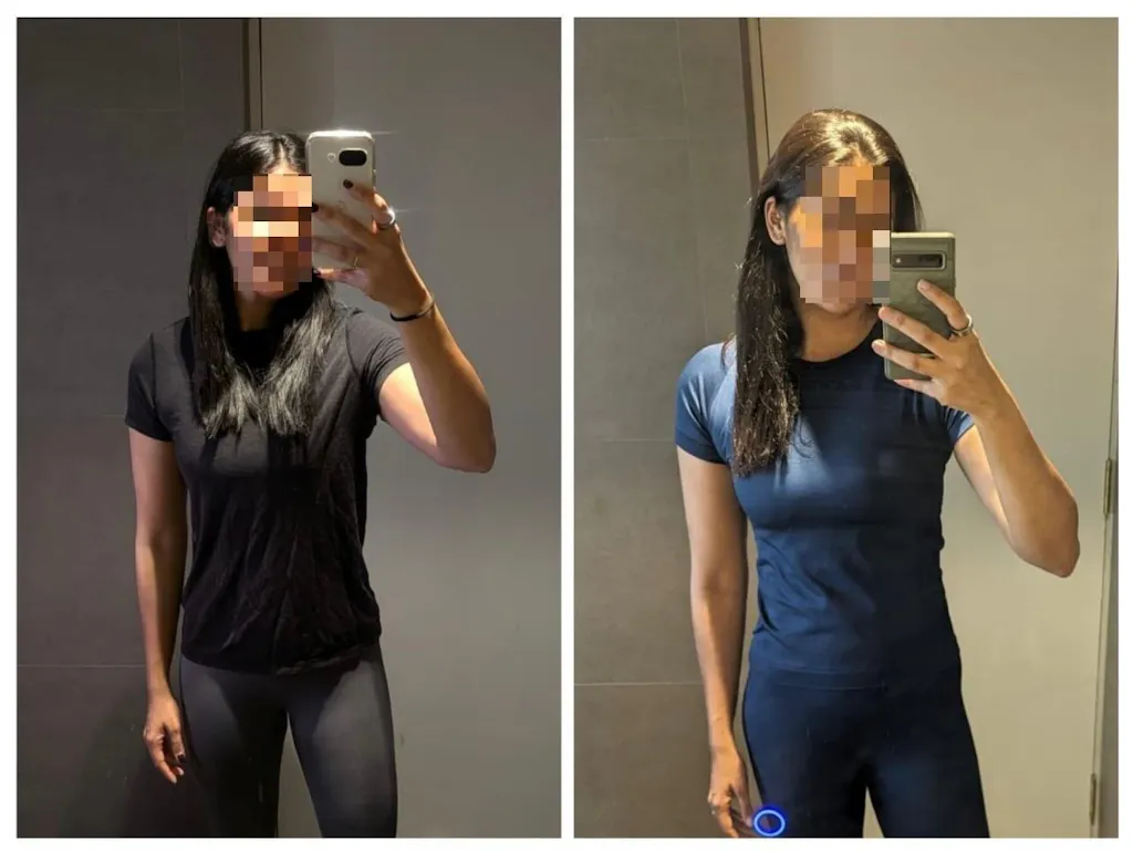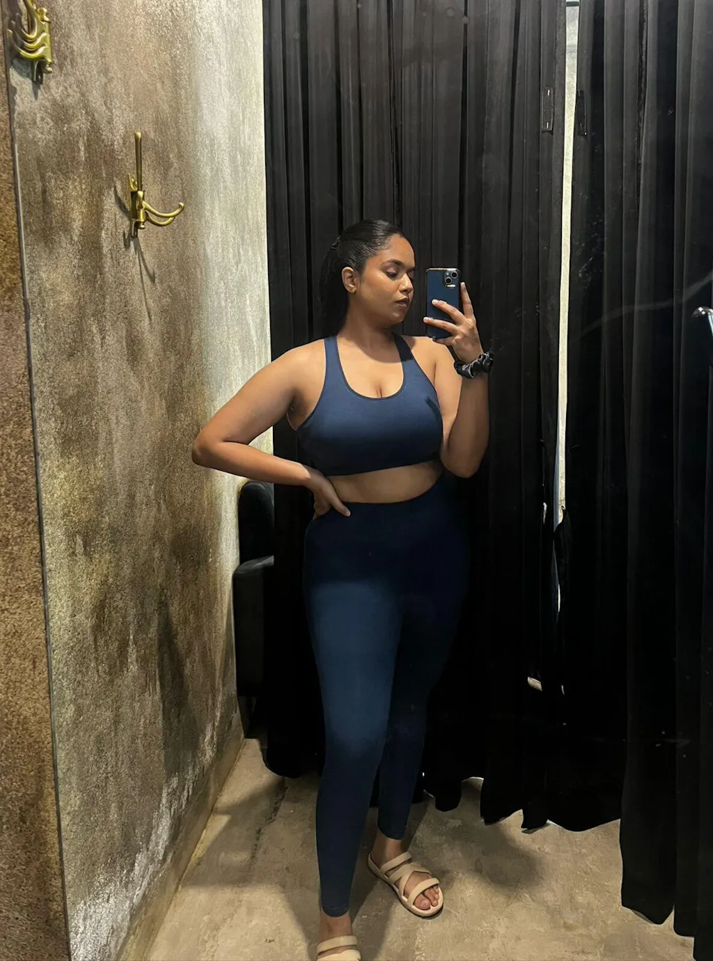 Eclipse Blue is a deep, rich jewel-toned blue that photographs accurately on screen. We show it on two models, Sara at 5 feet 10 inches in size S and Arushi at 5 feet 6 inches in size L, in different lighting so you get a realistic sense of the shade and fit across different body types.